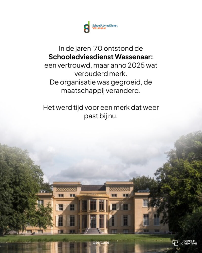 De Schooladviesdienst Wassenaar bestond al sinds de jaren ’70, maar het merk sloot niet meer aan bij vandaag. Tijdens twee DNA-sessies ontdekten we samen de kern: kansen creëren voor iedereen. Dat werd de basis voor een nieuwe koers én een nieuwe naam: